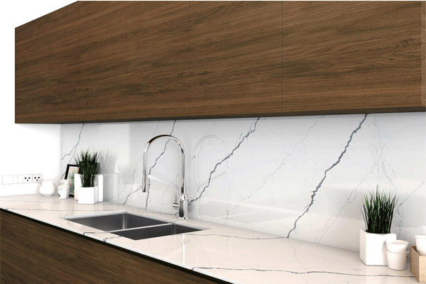 Không gian phòng bếp thêm sáng sủa nhờ mẫu đá ốp bếp nhân tạo Hàn Quốc